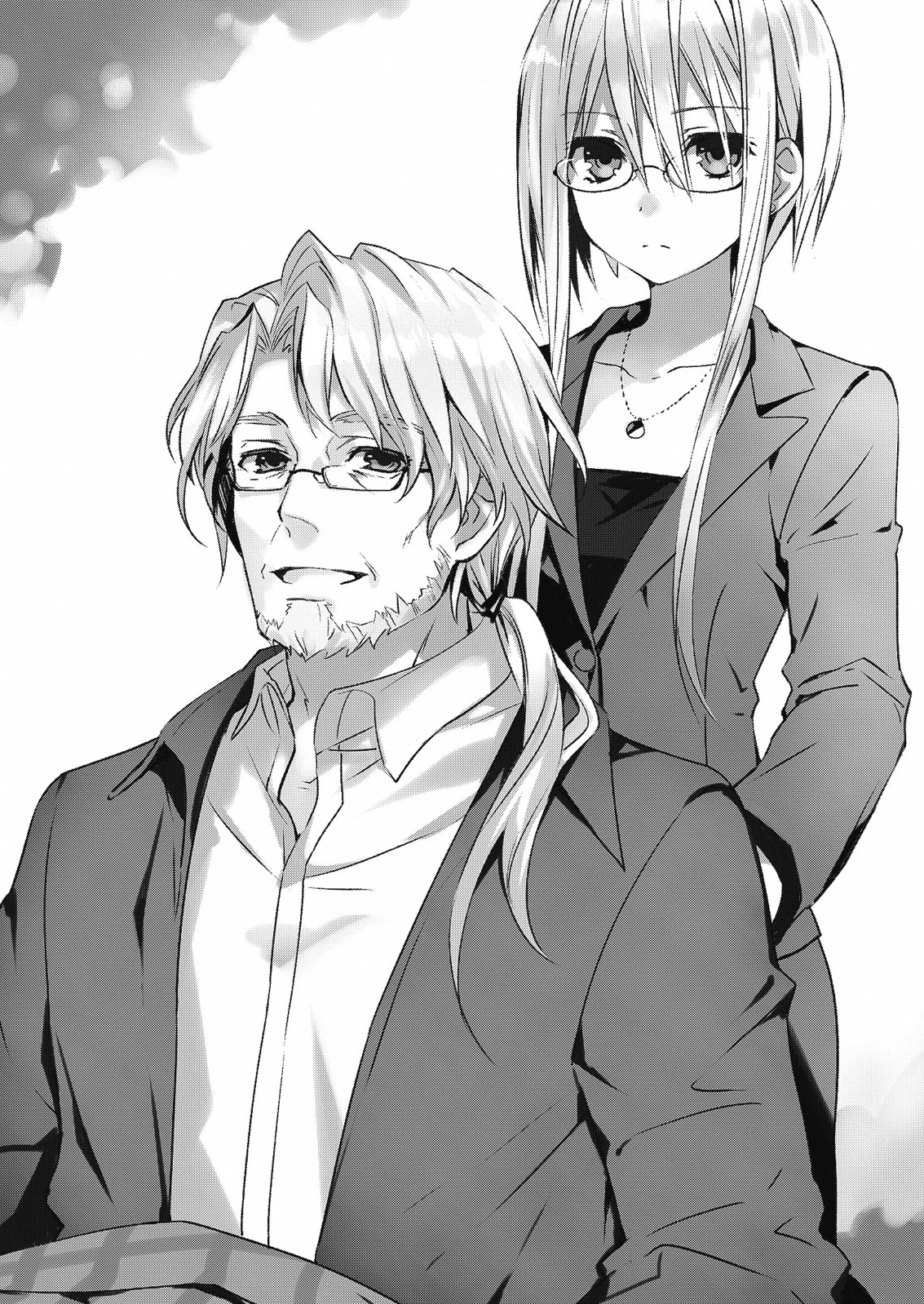 As he questions if this timely arrival of his old colleague is due to his newly acquired Demon King, Westcott admits that he had to use his own intuition since the Demon King <Beelzebub>'s information network is still scrambled by <Sister>. After exchanging pleasantries with his old friend, Woodman asks if the DEM director has come to kill them. In response, Westcott retorts that would defeat the entire purpose of not bringing Ellen along. If possible, he would wish to bring both him and Karen back to DEM. Upon voicing his refusal, Westcott summons <Beelzebub> and asks for his old rival to at least entertain him. Despite never wanting to be in such circumstances, Woodman merely sighs and pushes his hands down to raise himself from his wheelchair. However, his shoulder is pushed down by Karen, who tells him that fighting is out of the question. Relaxing her concerns, he tenderly brushes away Karen’s hand and remarks that he still at least has both of his hands. Just before confronting Westcott, he takes something resembling a golden name tag from his breast pocket.