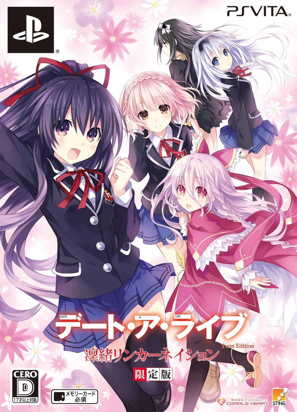 Date A Live Twin Edition: Rio Reincarnation is the third installment for the game series and was released on July 30, 2015 for the PlayStation Vita platform. It is a sequel and the conclusion story for the previous two games with a new character named Rio Sonogami, who is voiced by Ayane Sakura. The events are set right after Ars Install ended and before the events of Natsumi Search of the main story. The limited edition of this game includes a short story titled as Rio Reunion that features the original characters.