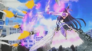 During the movie, Mayuri Judgement, Tohka temporarily gains the Reiryoku of all the Spirits Shido had sealed up until that point. While in this state, she gains a new Astral Dress that is a fusion of both her own and those of the other Spirits. Additionally, she also gains a new Angel called Shekinah, which like her own Angel <Sandalphon>, is a broadsword. She also maintains her ability to summon <Sandalphon>, allowing her to dual-wield both Angels at once. In this form, Tohka displayed increased speed for near-instantaneous movement, as well as enhanced strength capable of destroying <Kerubiel>'s Lahathelev state.